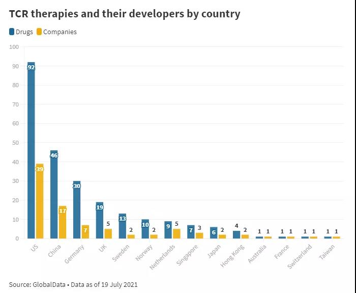 德國、英國和荷蘭等歐洲國家擁有一些僅次于美國和中國的全球最大TCR-T開發(fā)團隊。這些國家領(lǐng)先的TCR-T公司包括Immatics、荷蘭公司Gadeta、GSK和英國生物技術(shù)Adaptimmune。此外,在過去幾年中,歐洲以TCR為重點的生物技術(shù)也給出了大力支持。