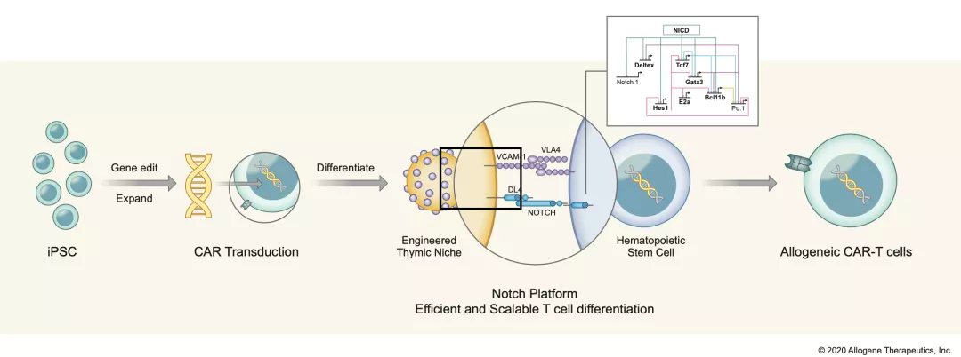 利用來(lái)自于Notch的專(zhuān)有iPSCs平臺(tái)進(jìn)行成熟T細(xì)胞和CAR-T工程細(xì)胞的生產(chǎn)。